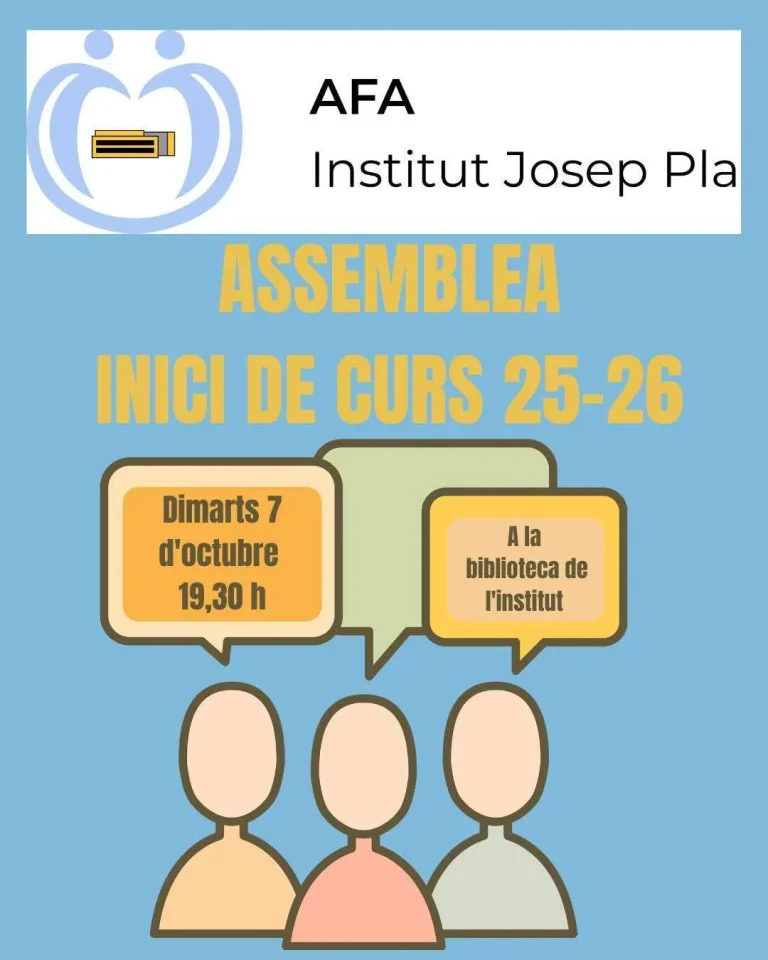 🗓️ 7 d’octubre de 2025 · Biblioteca de l’Institut Josep Pla El passat 7 d’octubre va tenir lloc l’assemblea ordinària de l’AFA de l’Institut…